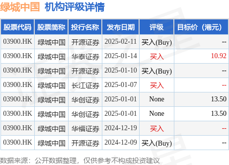 投行对该股的评级以买入(Buy)为主,近90天内共有3家投行给出买入(Buy)评级,近90天的目标均价为12.64港元。开源证券最新一份研报给予绿城中国买入(Buy)评级。